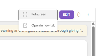 - Her kan du ogs? velge ? f? FeedbackFruits opp i fullskjerm eller i eget vindu ved ? trykke p? ikonet ved siden av EDIT-knappen